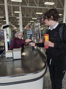 Student F is learning how to shop for his own lunch items and then to cook them using the oven.