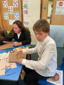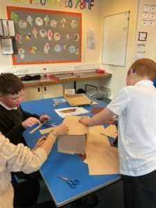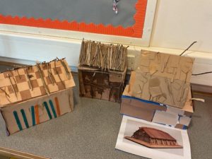 In knowledge and understanding of our world lessons, we have been learning about the Vikings. We have investigated where they came from, how they travelled to Britain, what happened when they arrived and their lifestyle once they had settled. We researched Viking longhouses and looked at how they are different to modern homes. One student pointed out ‘They were dark because they had no windows’ with another adding ‘The only light was from the fire in the middle of the house.’  We talked about how there was only one room in the longhouse with a student adding ‘The animals were at one end.’ They are of course absolutely right; during the winter, the farm animals shared the house with the Vikings. ‘Yuck, smelly!’ was the response from a student! To gain a full understanding, we also try to do hands-on learning. We achieved this by building our own longhouses. Each table worked together to research what materials were used by the Vikings and what the key features of the longhouse were. We then did our best to recreate this (with the help of the odd shoe box and sticks that we collected from the Grove). Everyone worked well together to create our three very different but authentic style longhouses. Communication between peers and positive interactions meant that everyone participated and enjoyed our hands-on learning.