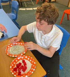 During our diversity day, students created their own food collage plates from around the world. They were very inquisitive exploring fire and ice-themed foods, using their senses to investigate textures, temperatures and tastes linked to our topic.