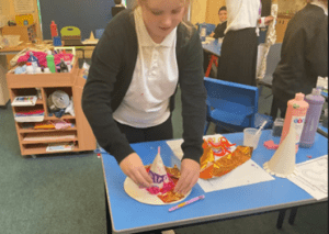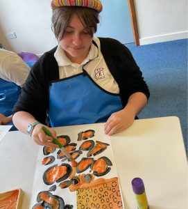 We really enjoyed taking part in the Halloween art competition. The competition was to create a witch or wizard’s hat. We all designed our own and shared these with the team. From this group discussion, we were able to talk about things that we liked from everyone’s designs. This led to all the students having a part in our final design.  Everyone made something to go on our witch’s hat, which was so lovely and really made it feel a group effort. We were so pleased that our hat came 3rd out of all of the hats in school!
