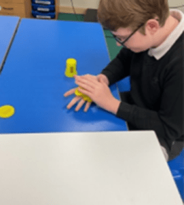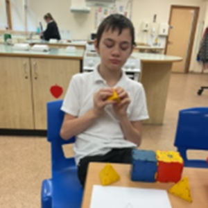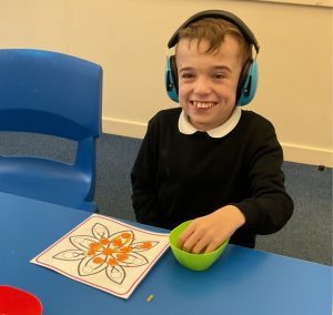 In 7/8ND this term, we have enjoyed focusing on regulation, sensory breaks and movement breaks. This has helped us to regulate and prepare our minds ready for learning. We have enjoyed time out in the MUGA for short movement breaks involving ball games. Students have also enjoyed sensory time in our quiet room using lots of resources. They particularly enjoy tactile resources such as modelling clay and poppets and using a curling plate along the carpet. In team, we often enjoy mindful music and images on our screen whilst we work and students are beginning to understand the importance of calming their minds and bodies ready for learning and really enjoy these experiences.