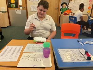 This half term, things have turned much colder as we moved onto ice and snow. Students have been taking part in sensory stories and Sensology sessions, exploring frosty textures, cool colours and wintery sounds. We have particularly enjoyed sensory sessions exploring the Northern Lights. Within all sensory activities, we are learning to communicate our preferences, cause an effect on something in our environment and to tolerate a range of sensory textures and temperatures. It has been a busy and exciting term, and our students have worked very hard!